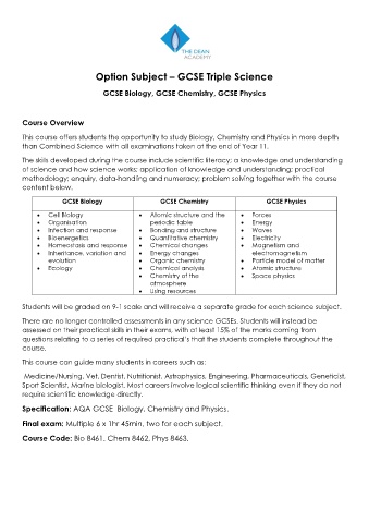 Specification: AQA GCSE Biology, Chemistry and Physics.