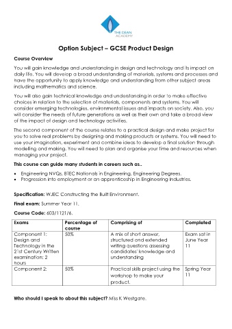 Option Subject – GCSE Product Design